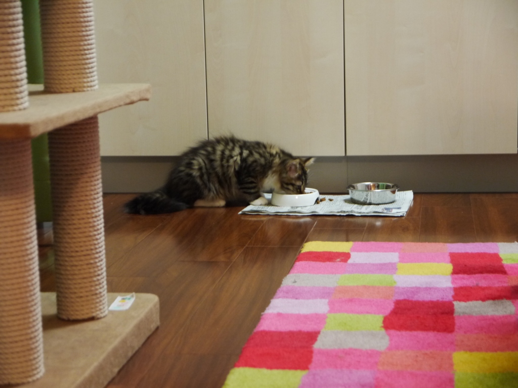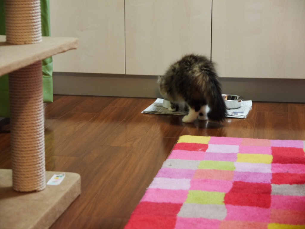 右の前足浮いてますが 食事継続