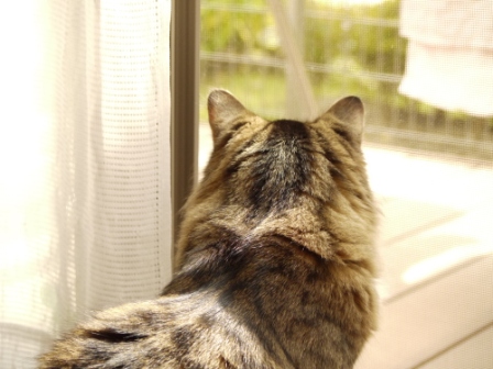 (外を眺める後ろ頭 つい撮りたくなる姿です)