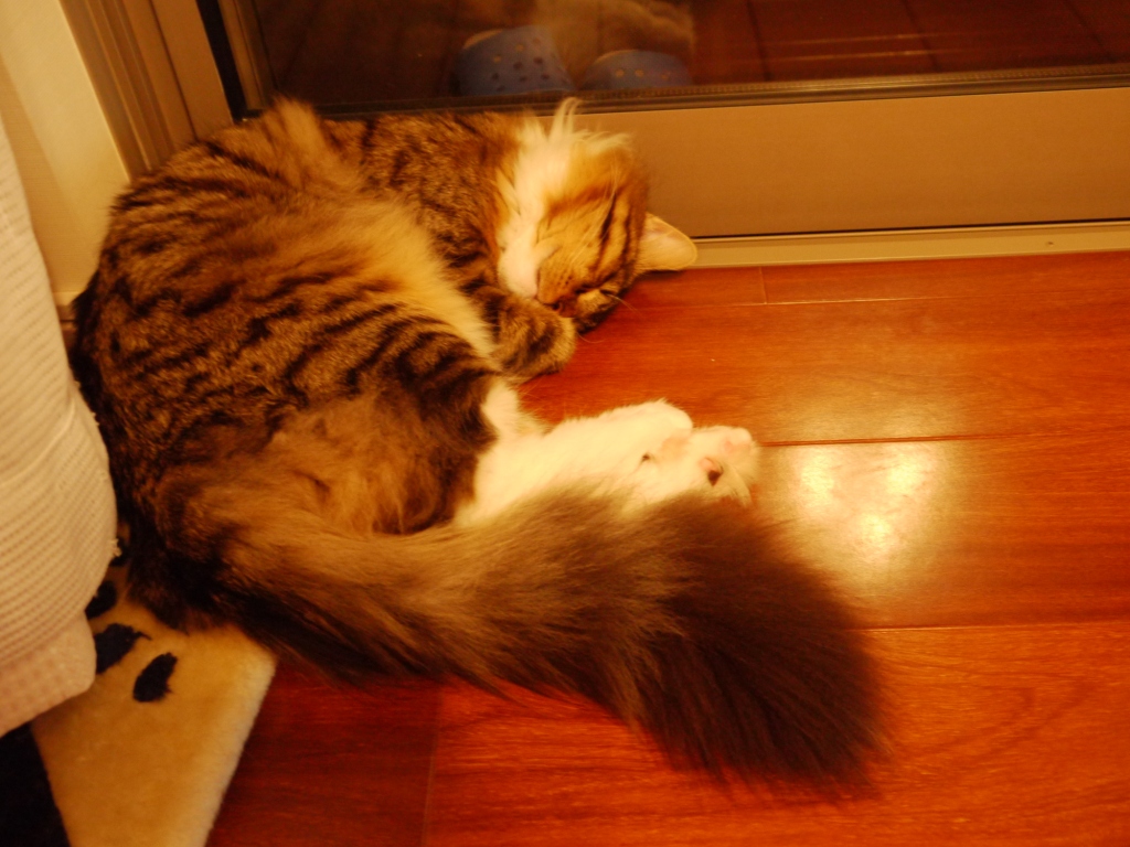 ぐっすり寝ているレオさまの 前足の爪を切りたい