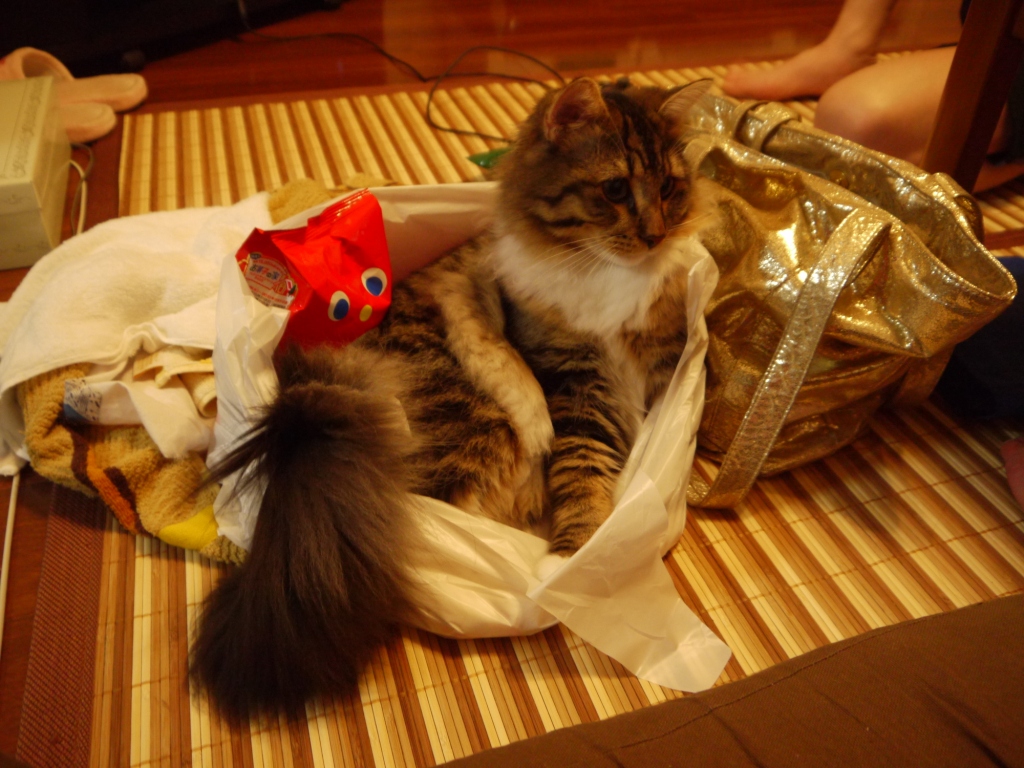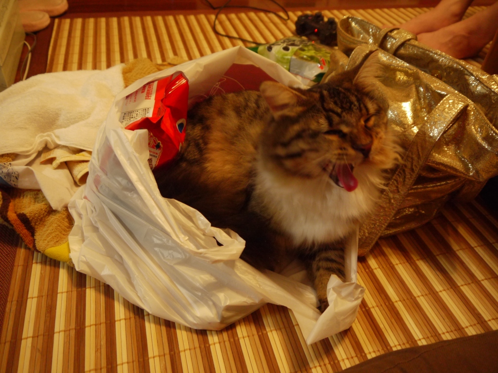 ↑ 帰宅後 買い物袋に入る レオさま
