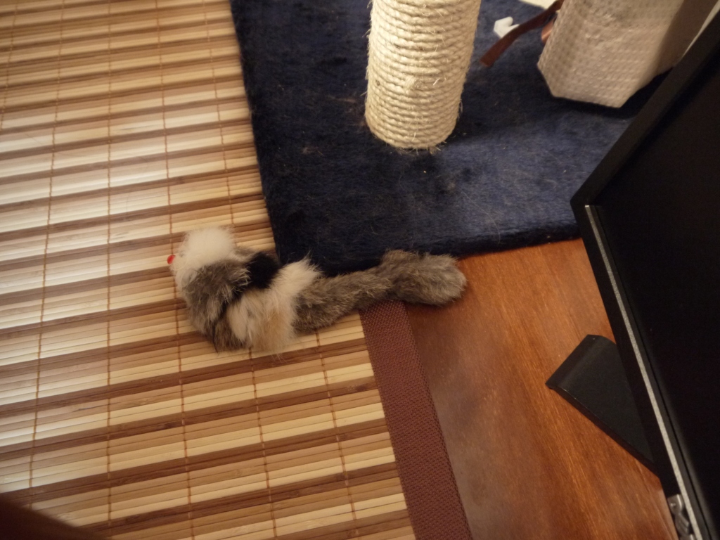 床に落ちたネズミのおもちゃ