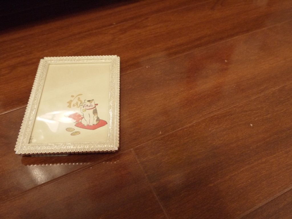 床におちた招き猫の額縁