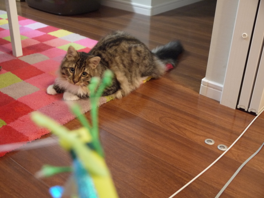 この後覚醒し バッタのじゃらしに大興奮