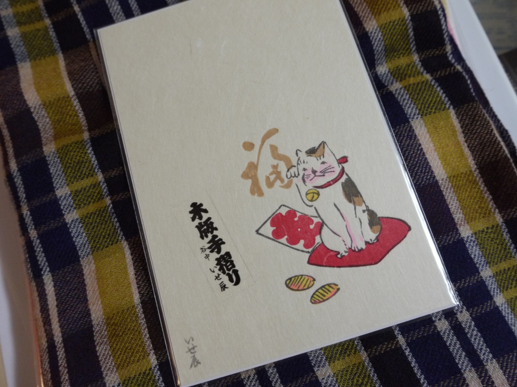 「いせ辰」さんで買った まねき猫の絵ハガキ