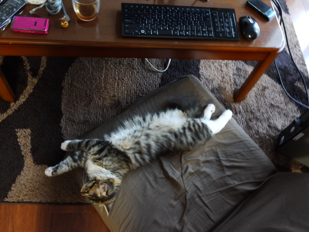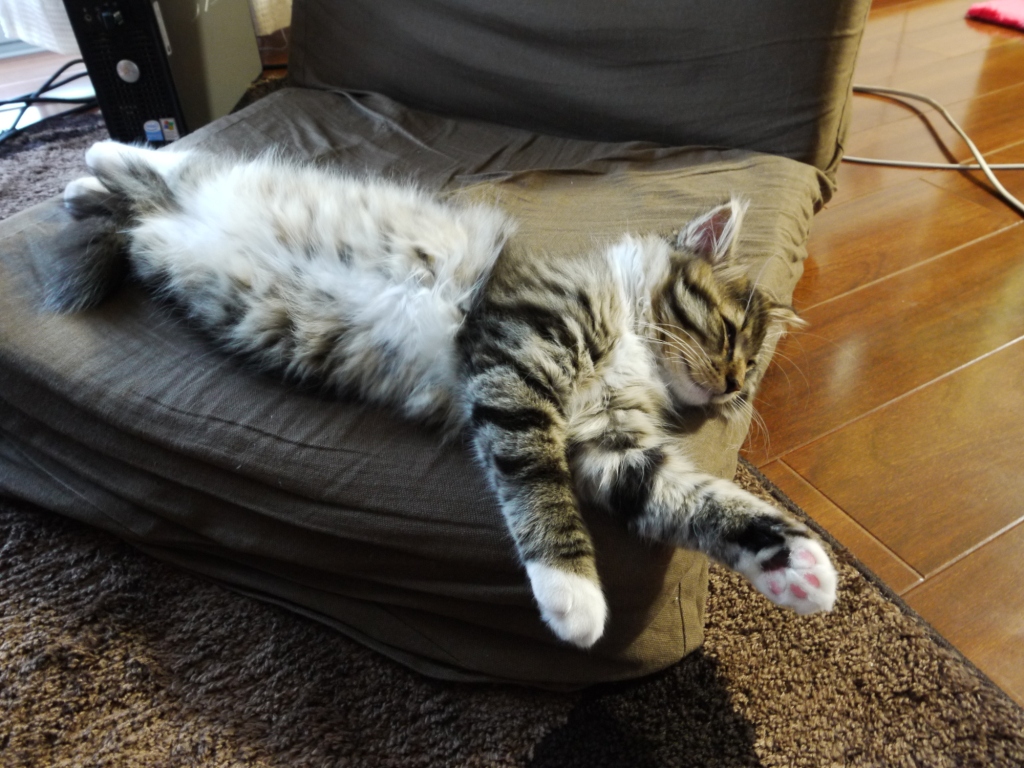 ちょっとトイレに行っている間に、レオに座イスを取られてしまった。