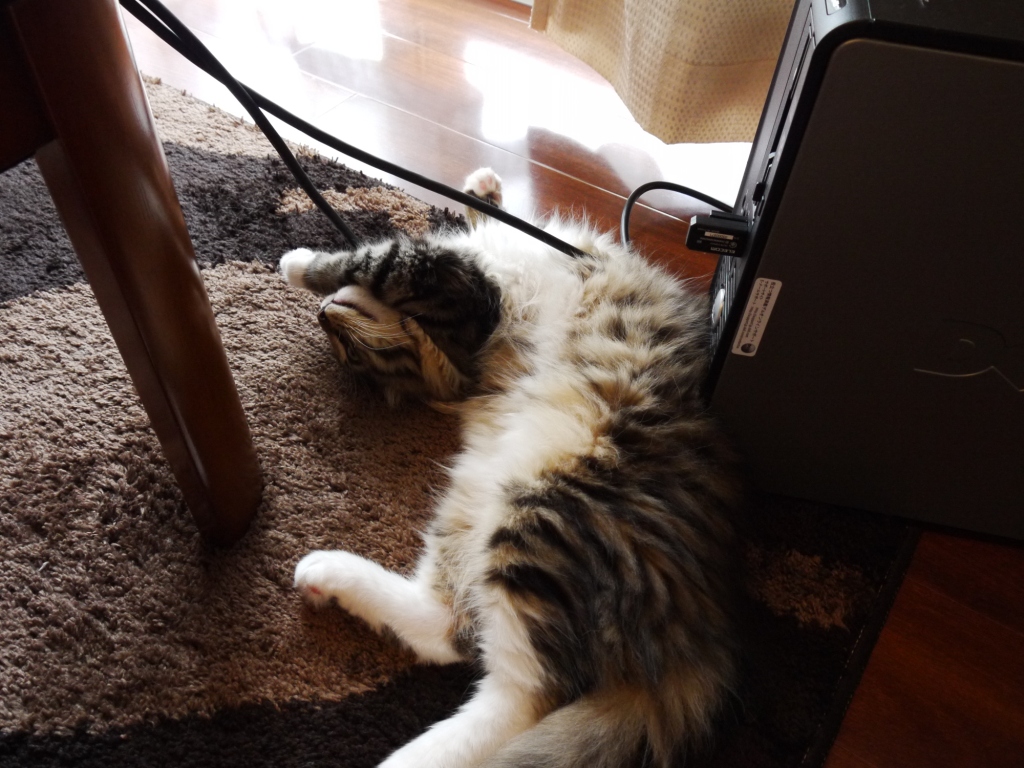 わざわざケーブルにからまって伸びてるのは 腹いせ・・・・?
