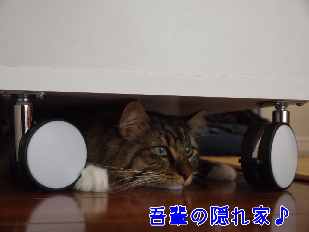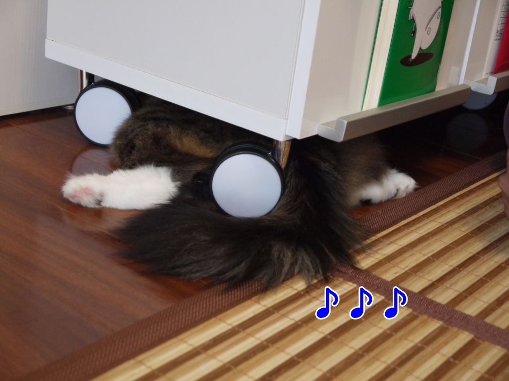 居間にある本棚の下が 最近のレオさまのヒットポイント