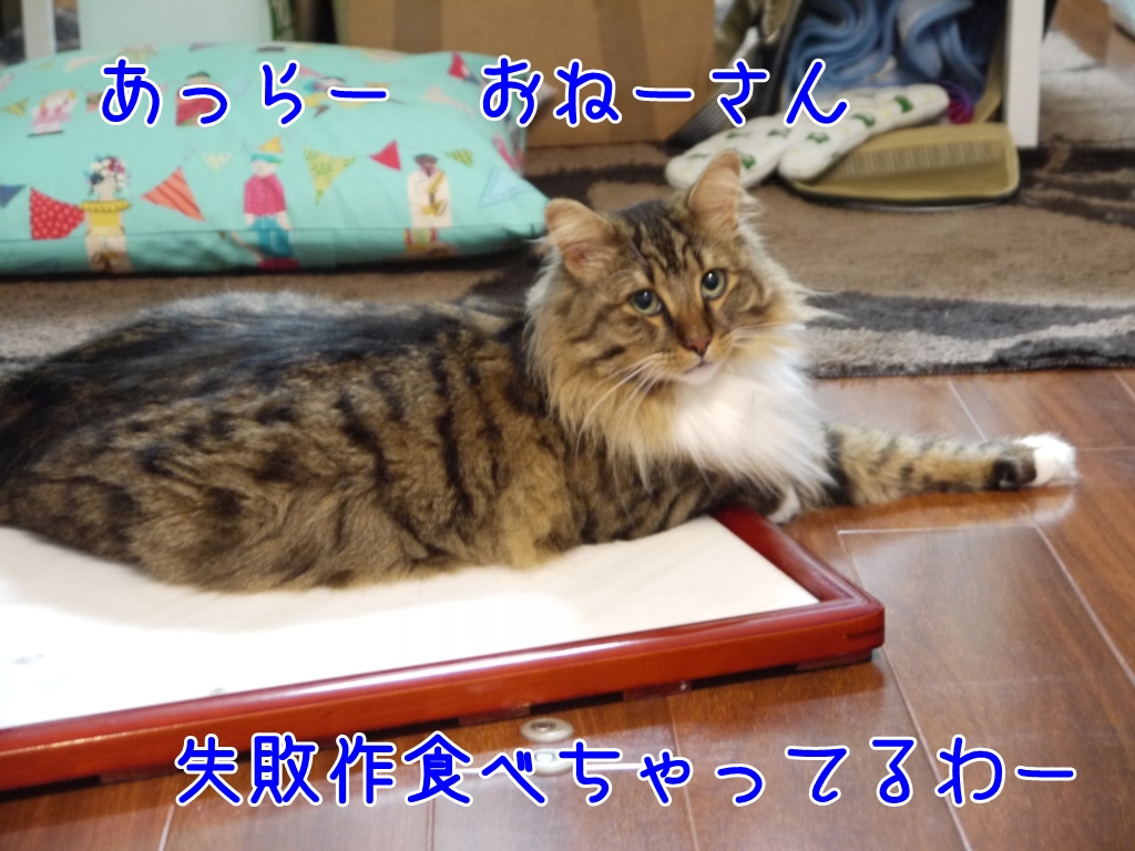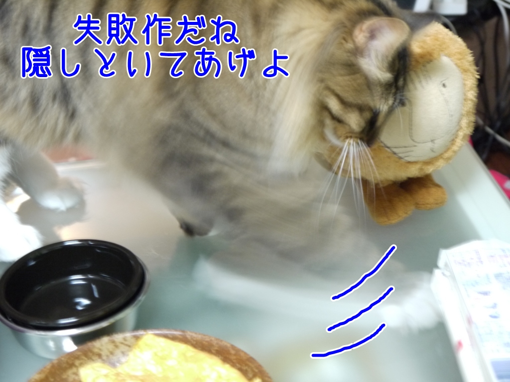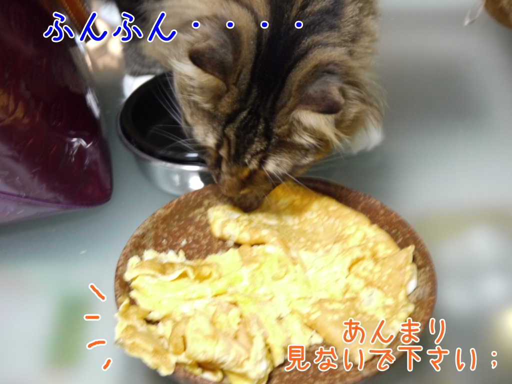 失敗した卵焼きをさっそくチェックするレオさま