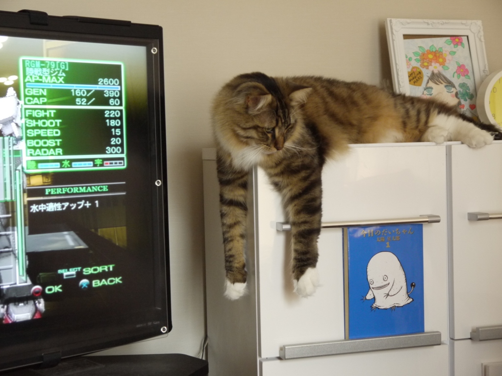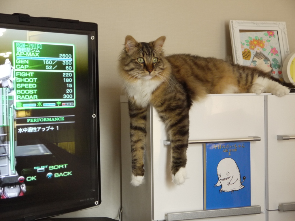 なんのことはない、ダンナがやってるガンダムのゲーム画面ですわ