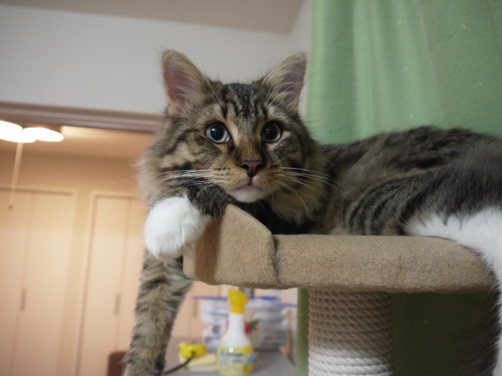 レオ、わるいけどキャットタワーのてっぺん、なくなるよ