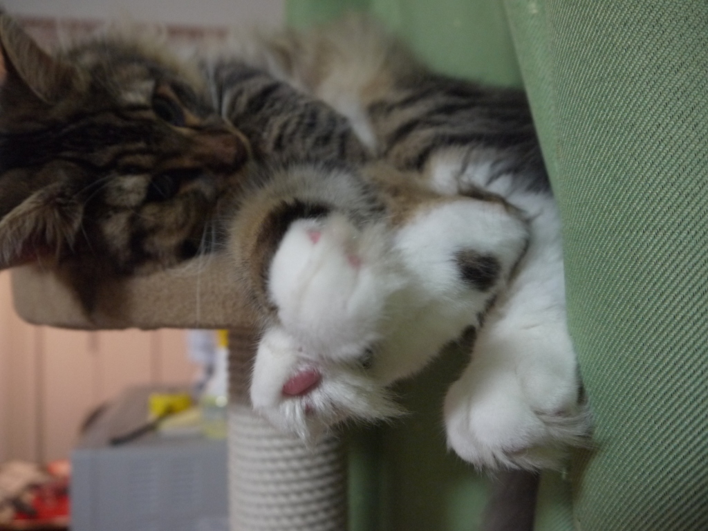 寝顔はキャットタワーでも床でも変わんないやね