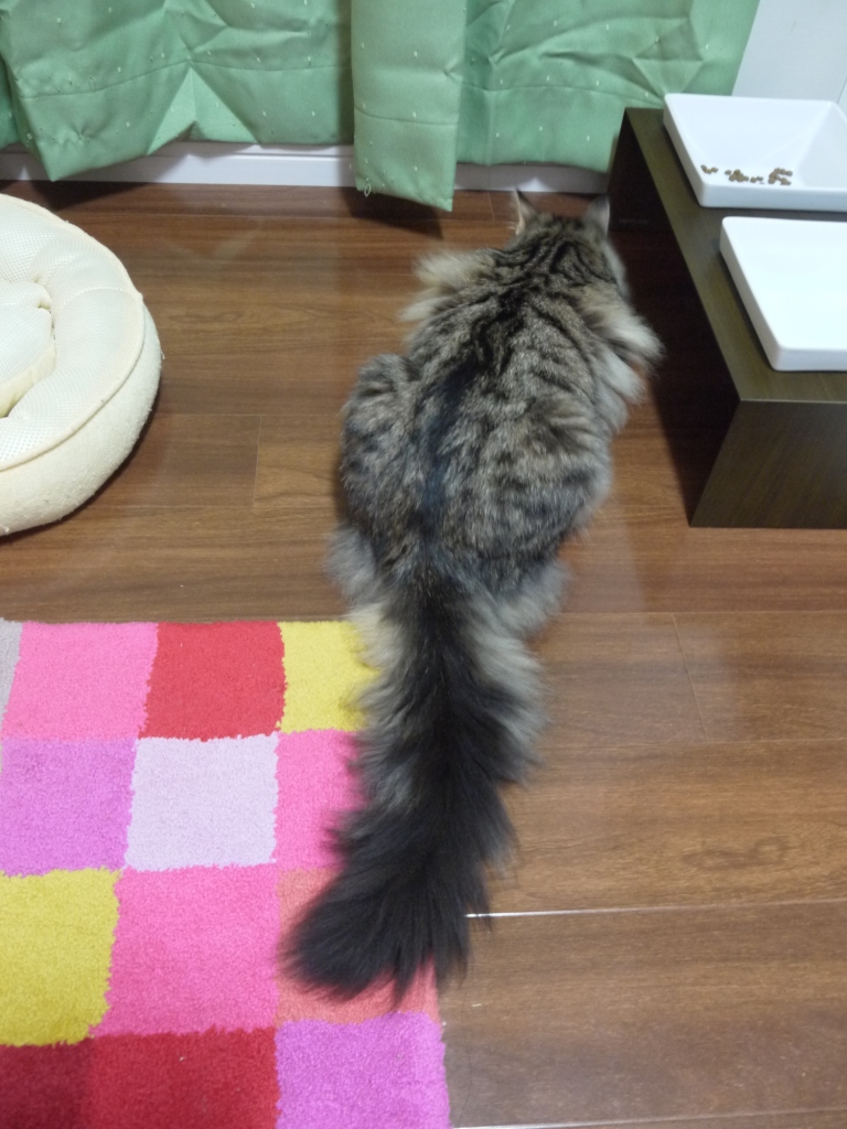 普段、このシッポを立てて歩くので、なんか噴水みたいになってます